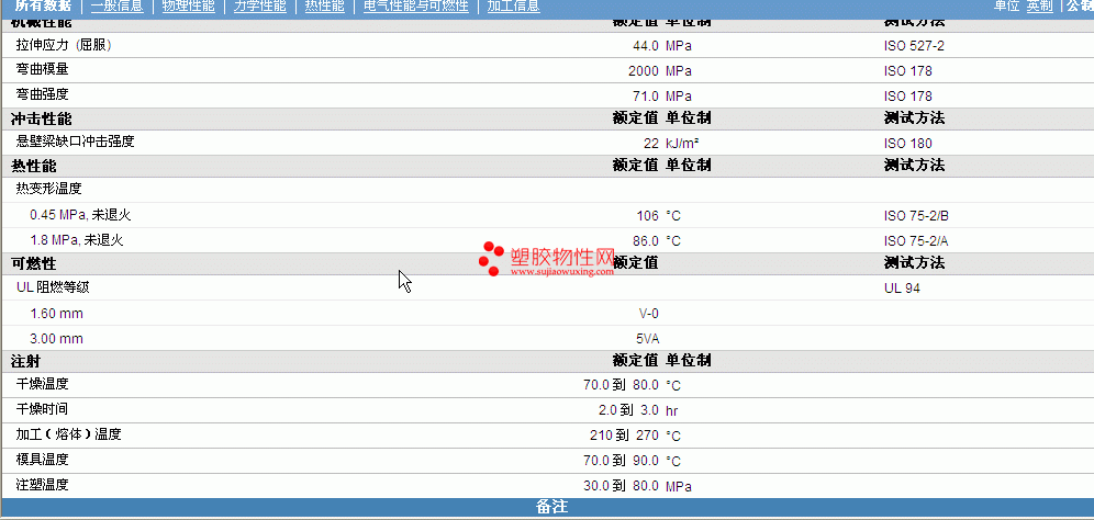 其他工程塑料物性表