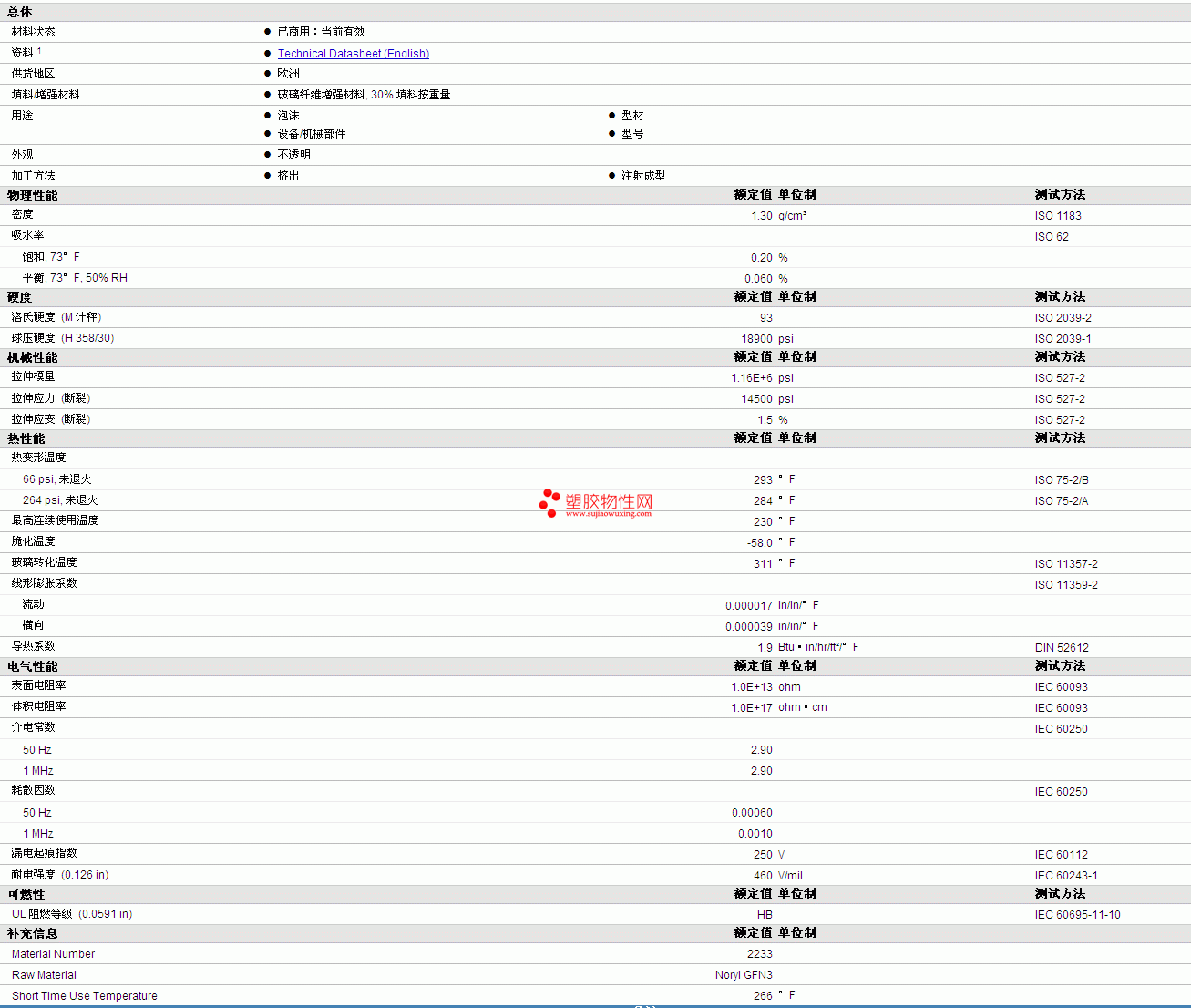 | 球压硬度 (H 358/30) | 18900 | psi | ISO 2039-1 |