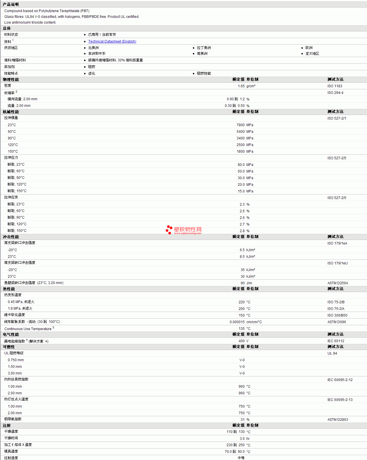 Later pbt 4 G/30-V0CT2物性表 见图片
