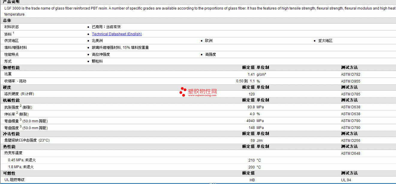LGF PBT Series LGF3150物性表见图片