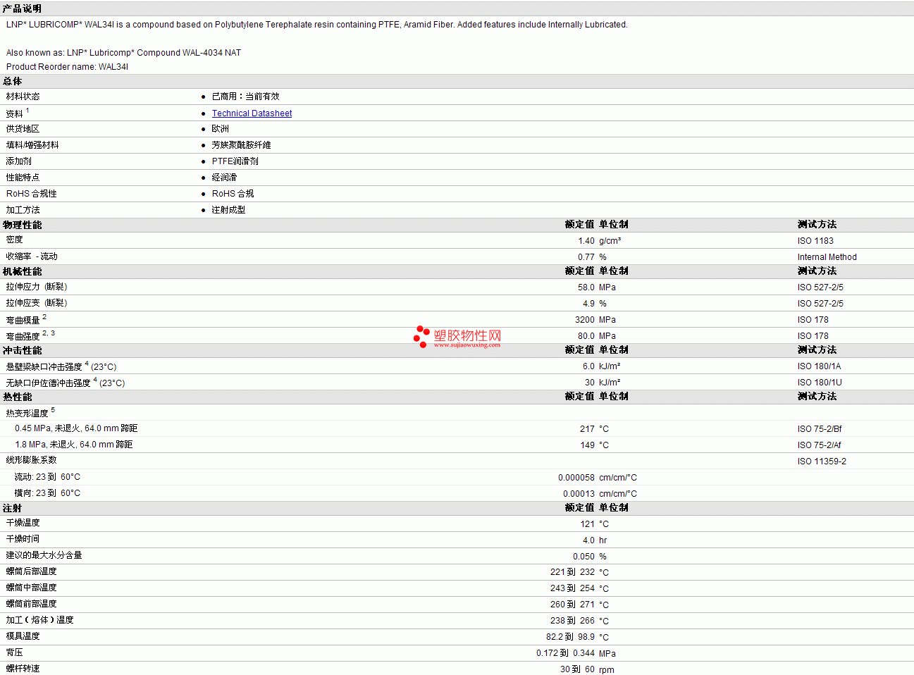 LNP pbt Lubricomp WAL34I物性表见图片