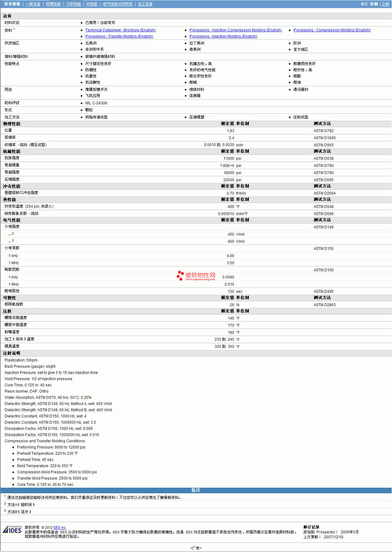 其他工程塑料物性表