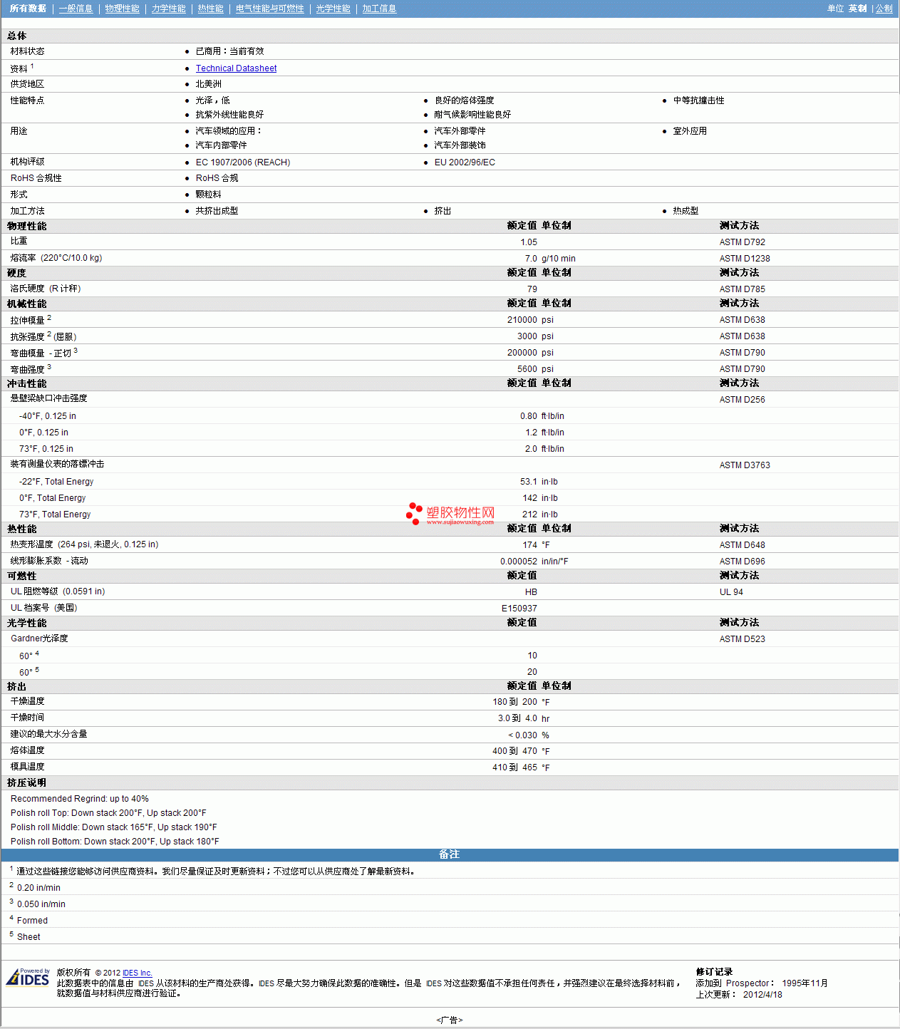 其他工程塑料物性表