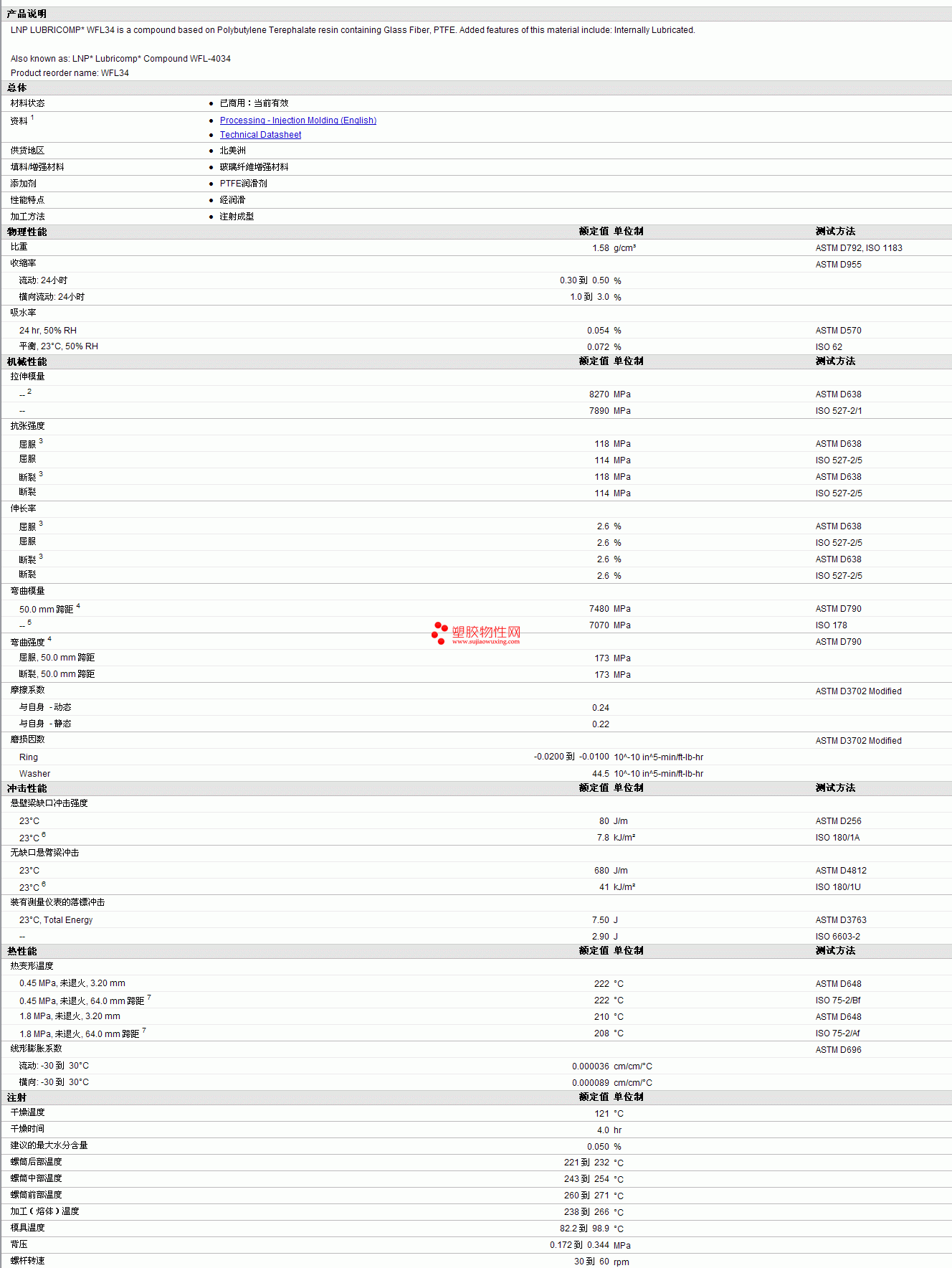 LNP pbt Lubricomp WFL34物性表 见图片