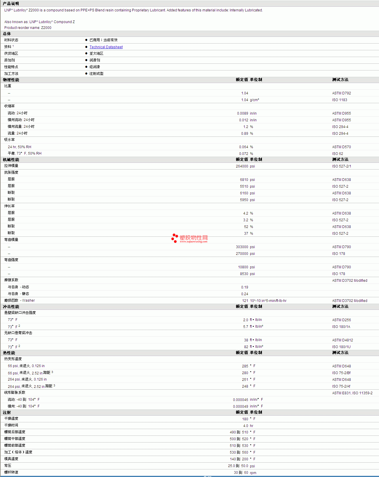 LNP* Lubriloy  PPE    Z2000物性表    详细情况如图