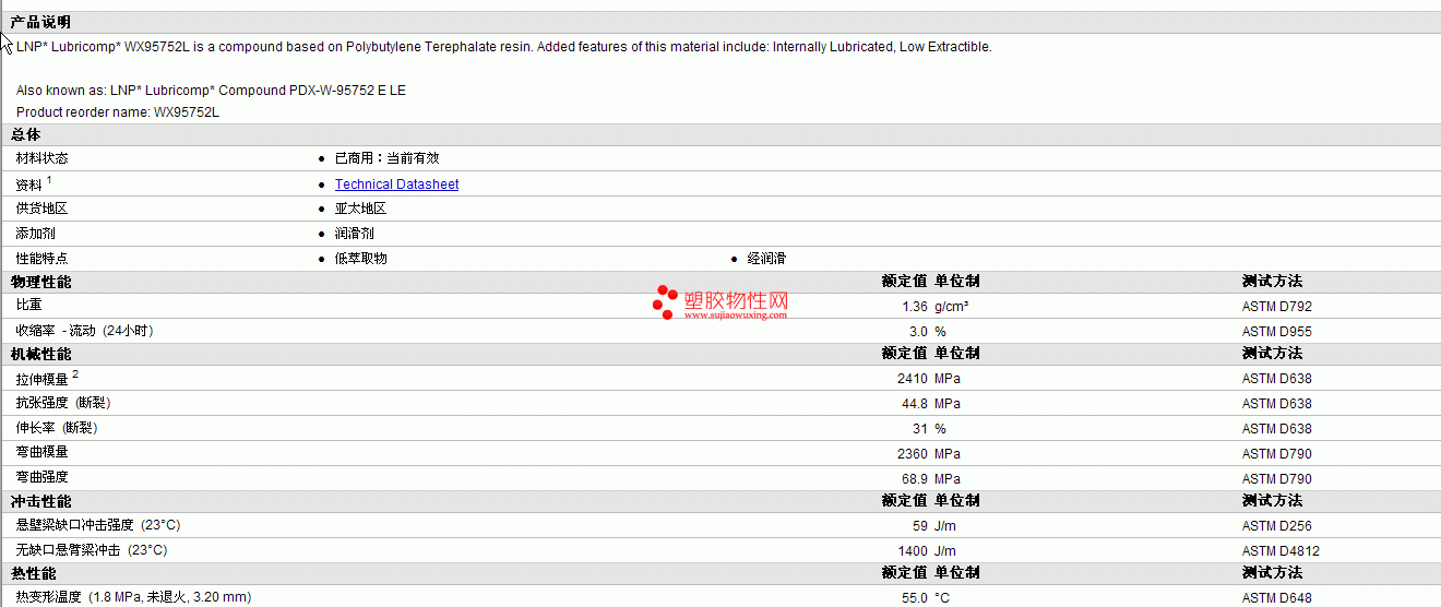 LNP pbt Lubricomp WX95752L物性表 见图片