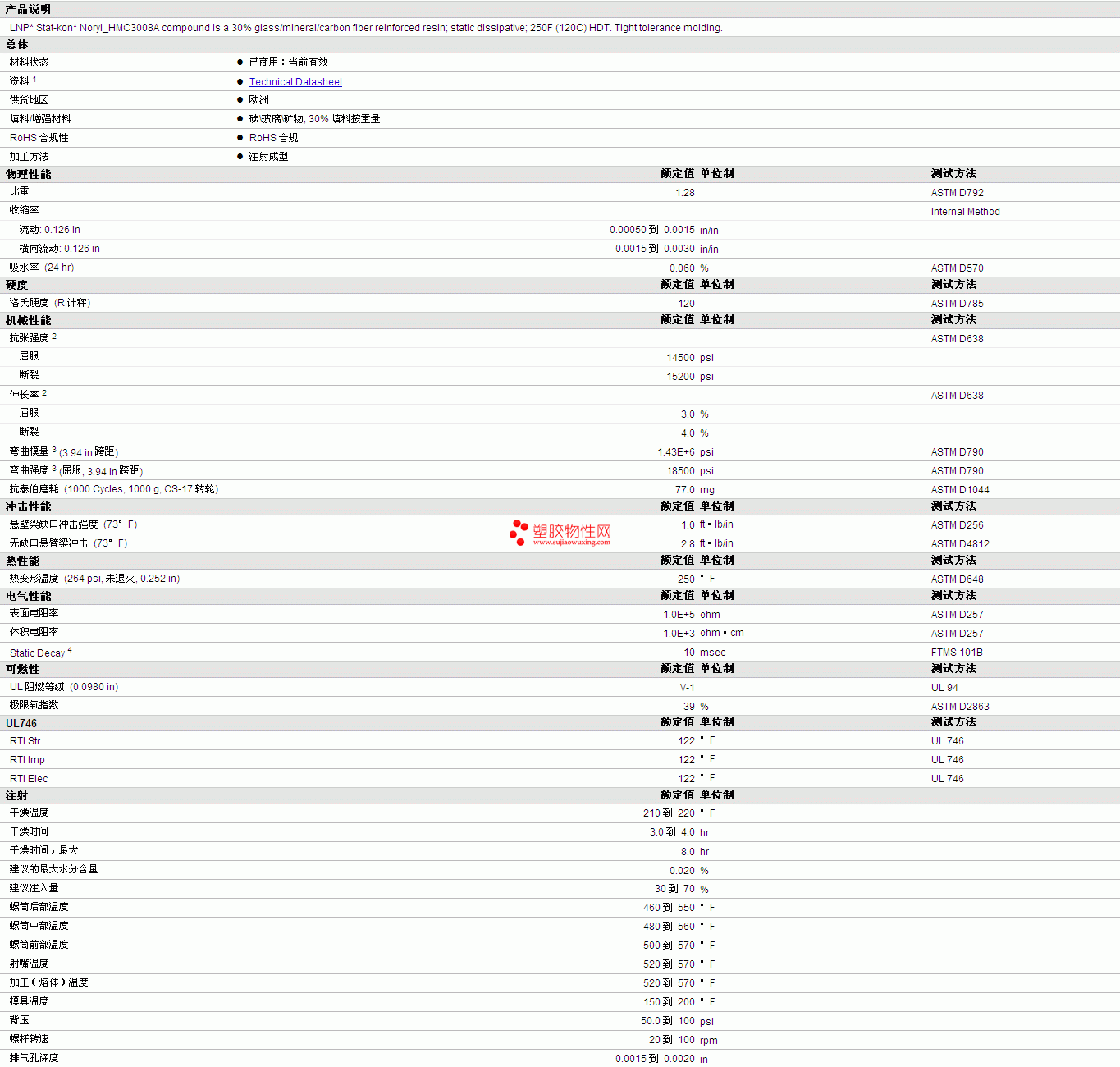 | 硬度 | 额定值 | 单位制 | 测试方法 |