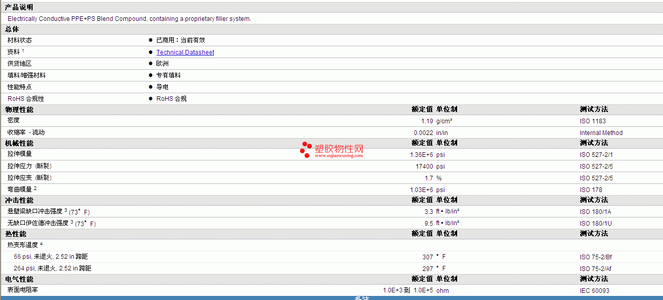 | 拉伸应变 (断裂) | 1.7 | % | ISO 527-2/5 |