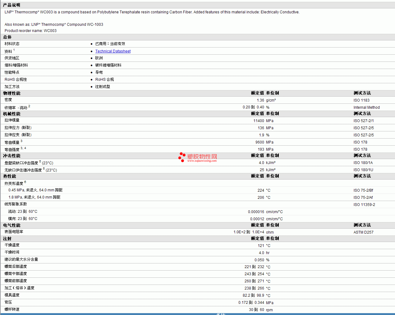 LNP pbt Thermocomp WC003物性表图片