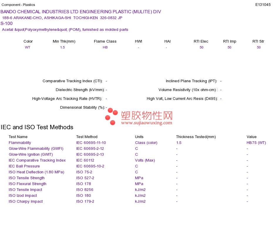 Acetal "Polyoxymethylene" (POM) S-100UL黄卡资料请登陆会员后查看,如需电子档资料,请联系客服! 赵生:手机13424755533;QQ:27660005