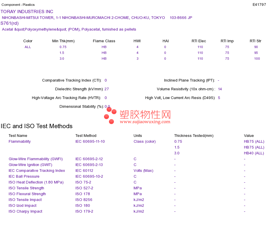 Acetal "Polyoxymethylene" (POM) S761(rd)UL黄卡资料请登陆会员后查看,如需电子档资料,请联系客服! 赵生:手机13424755533;QQ:27660005