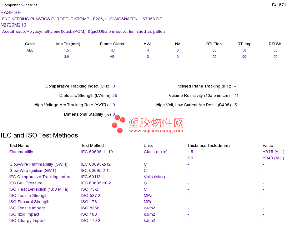 Acetal "Polyoxymethylene" (POM) N2720M210UL黄卡资料请登陆会员后查看,如需电子档资料,请联系客服! 赵生:手机13424755533;QQ:27660005