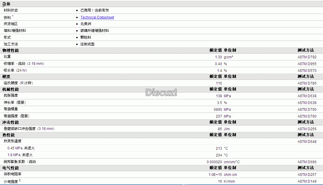 HiFill PA6 GF20 L UV BK物性表详细内容如图