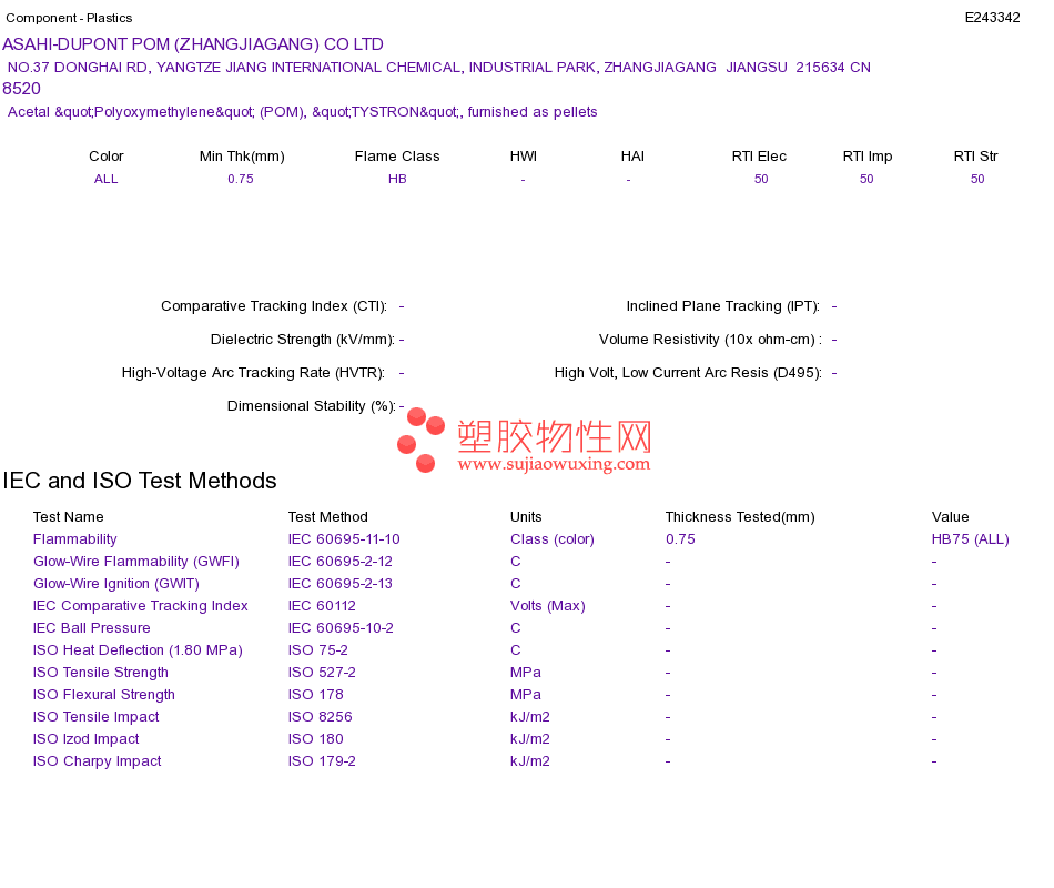 Acetal "Polyoxymethylene" (POM) 8520UL黄卡资料请登陆会员后查看,如需电子档资料,请联系客服! 赵生:手机13424755533;QQ:27660005