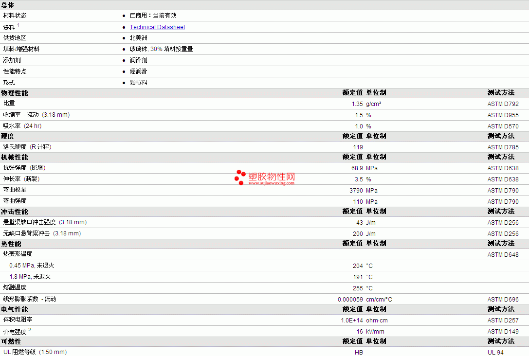 HiFill PA6 GB30 L物性表详情见附件