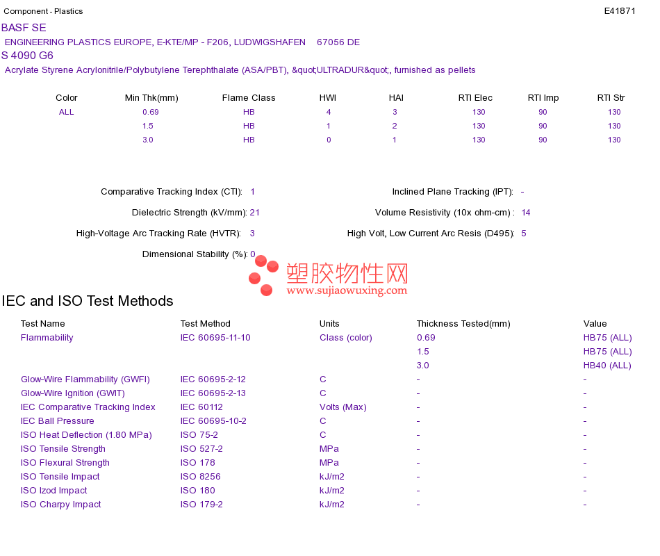 Acrylate Styrene Acrylonitrile/Polybutylene Terephthalate (ASA/PBT) S 4090 G6UL黄卡资料请登陆会员后查看,如需电子档资料,请联系客服! 赵生:手机13424755533;QQ:27660005