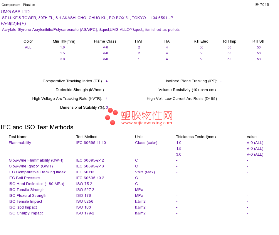 Acrylate Styrene Acrylonitrile/Polycarbonate (ASA/PC) FA-8(t2)E(+)UL黄卡资料请登陆会员后查看,如需电子档资料,请联系客服! 赵生:手机13424755533;QQ:27660005