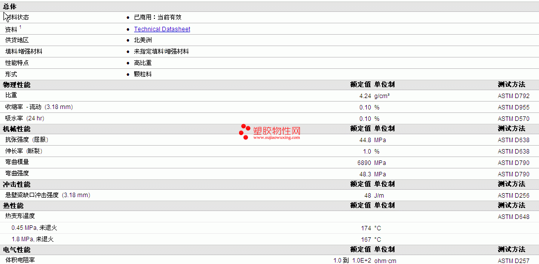 HiFill PA6 0425物性表详情如图所示