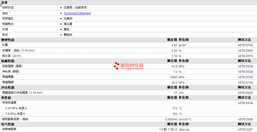 HiFill PA6 0390 S1 BK物性表详细内容如图