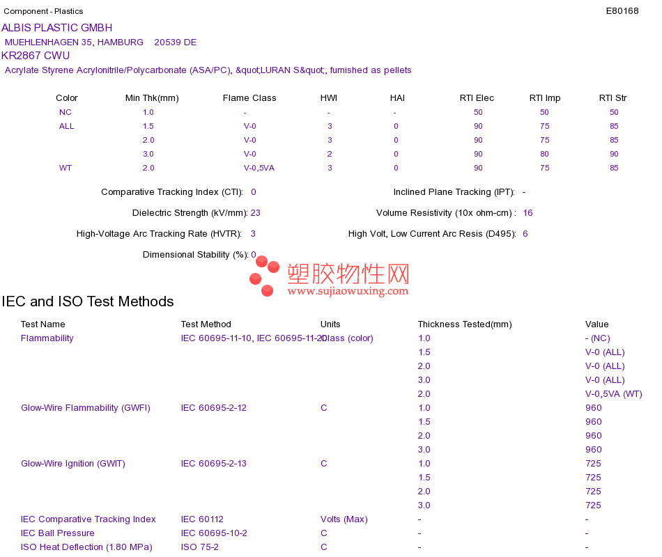 Acrylate Styrene Acrylonitrile/Polycarbonate (ASA/PC) KR2867 CWUUL黄卡资料请登陆会员后查看,如需电子档资料,请联系客服! 赵生:手机13424755533;QQ:27660005