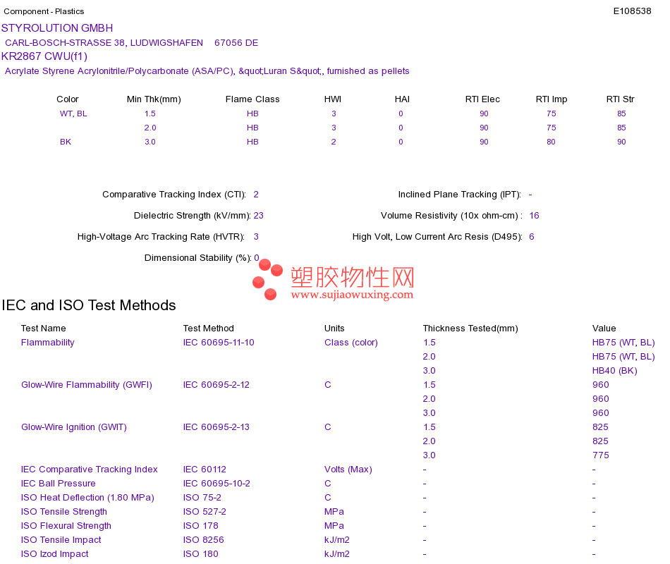 Acrylate Styrene Acrylonitrile/Polycarbonate (ASA/PC) KR2867 CWU(f1)UL黄卡资料请登陆会员后查看,如需电子档资料,请联系客服! 赵生:手机13424755533;QQ:27660005