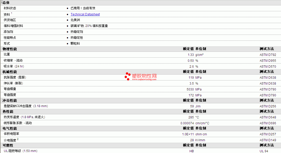 | 收缩率 - 流动 | 0.50 | % | ASTM D955 |