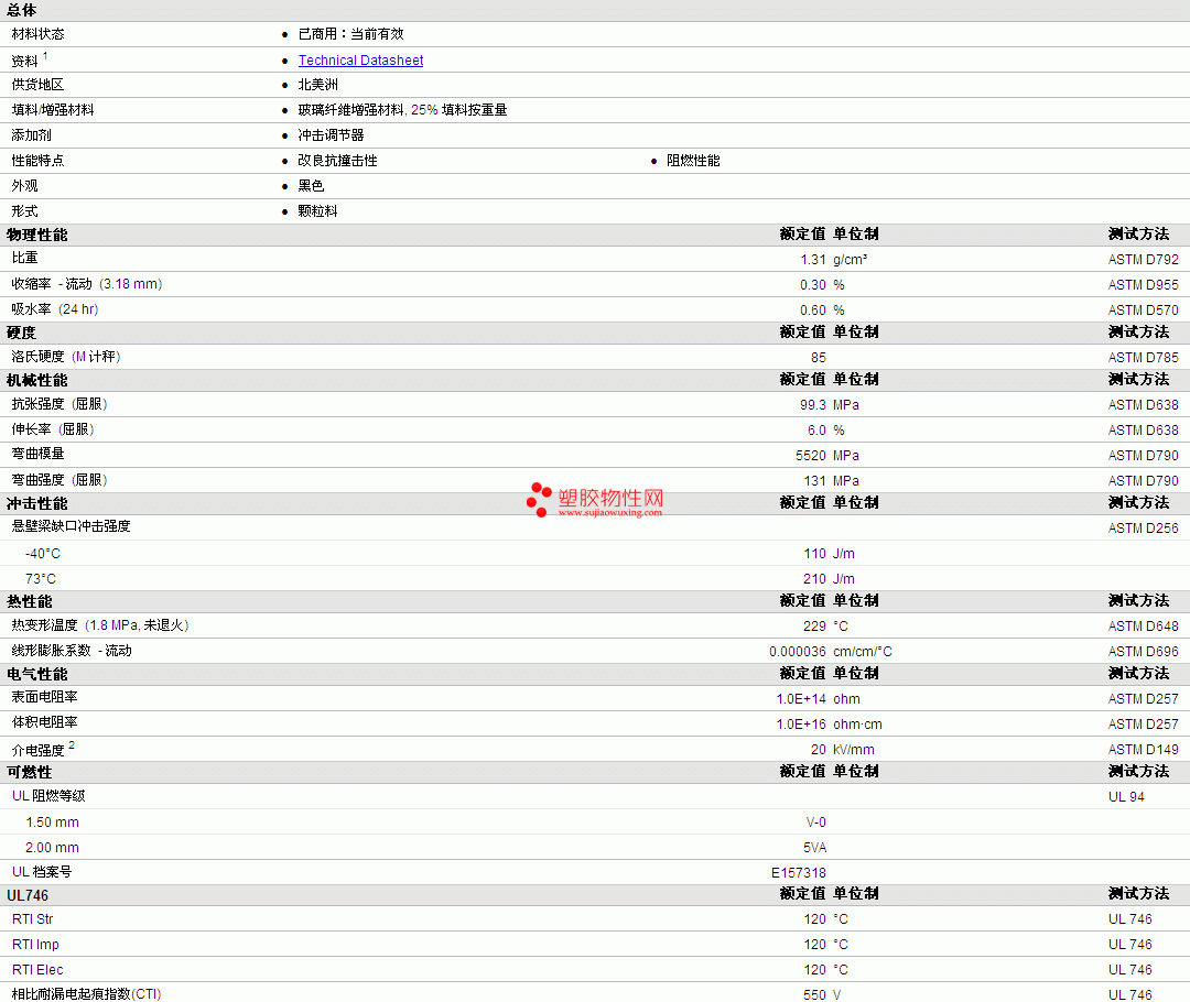 HiFill FR PA6/6 GF25 FR-N IM BK物性表更多资料见下图