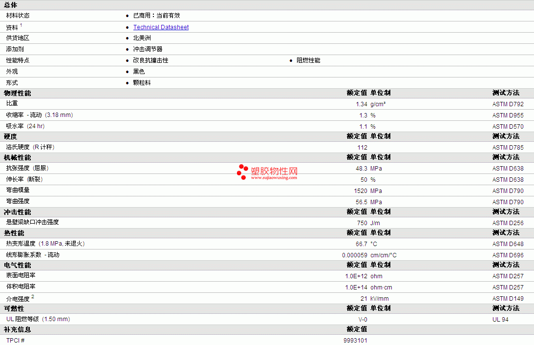 HiFill FR PA6/6 FR IM BK物性表详细内容如图