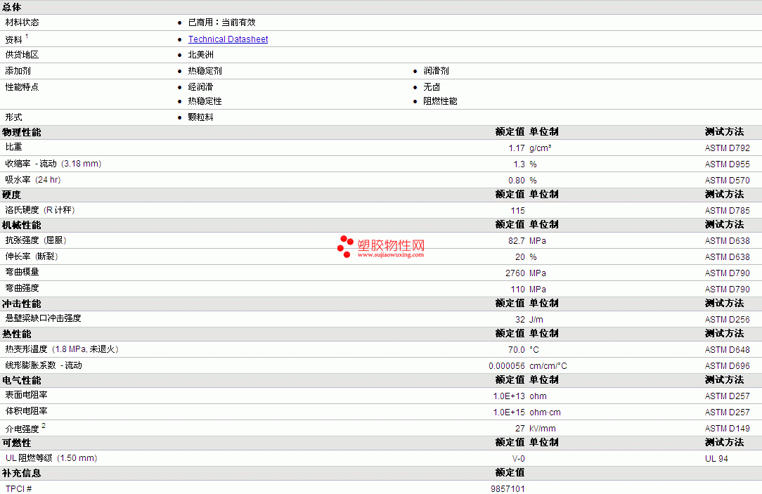 | Celcon POM UV90Z物性表 |