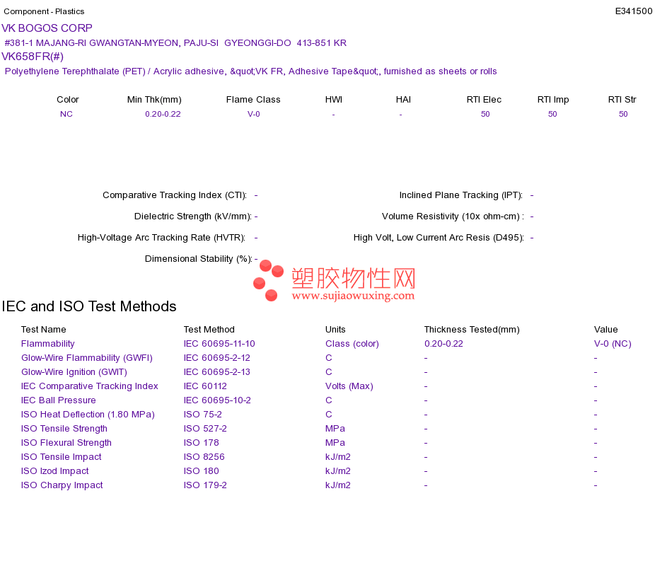 Polyethylene Terephthalate (PET) / Acrylic adhesive VK658FR(#)UL黄卡资料请登陆会员后查看,如需电子档资料,请联系客服! 赵生:手机13424755533;QQ:27660005