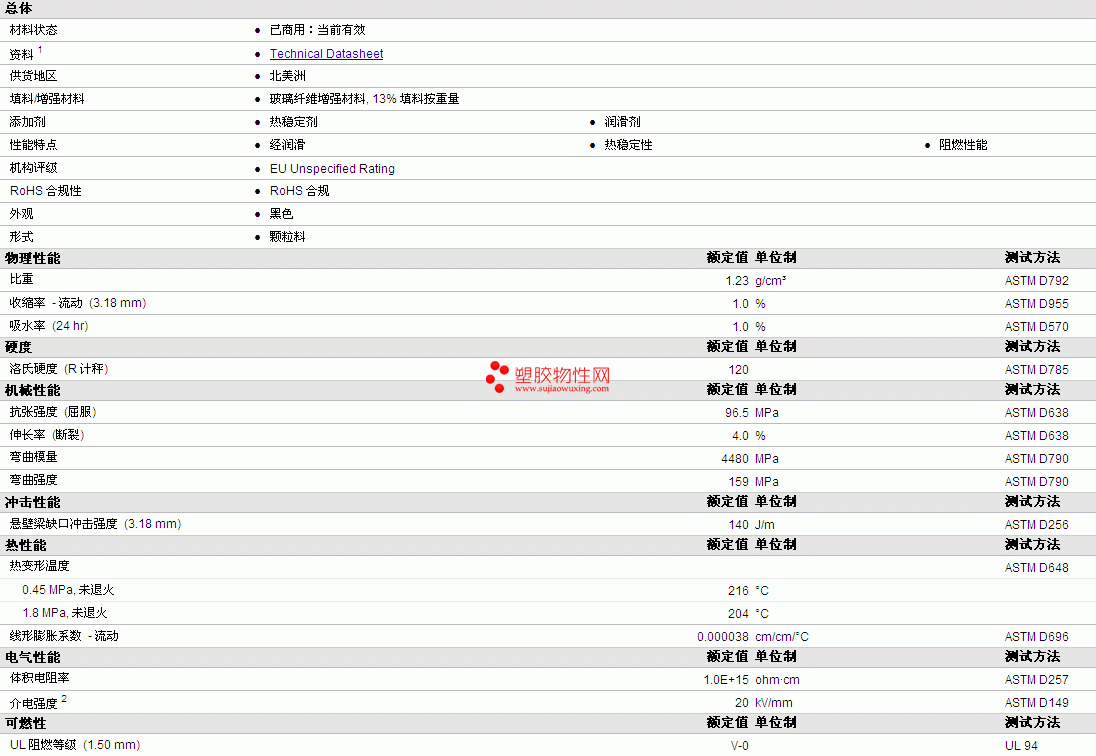 HiFill FR PA6 GF13 FR-N BK物性表详细内容如图