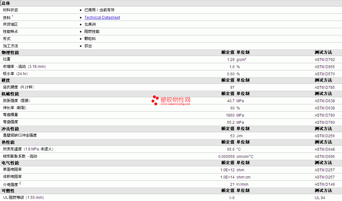 HiFill FR PA6 E FR物性表更多资料见下图