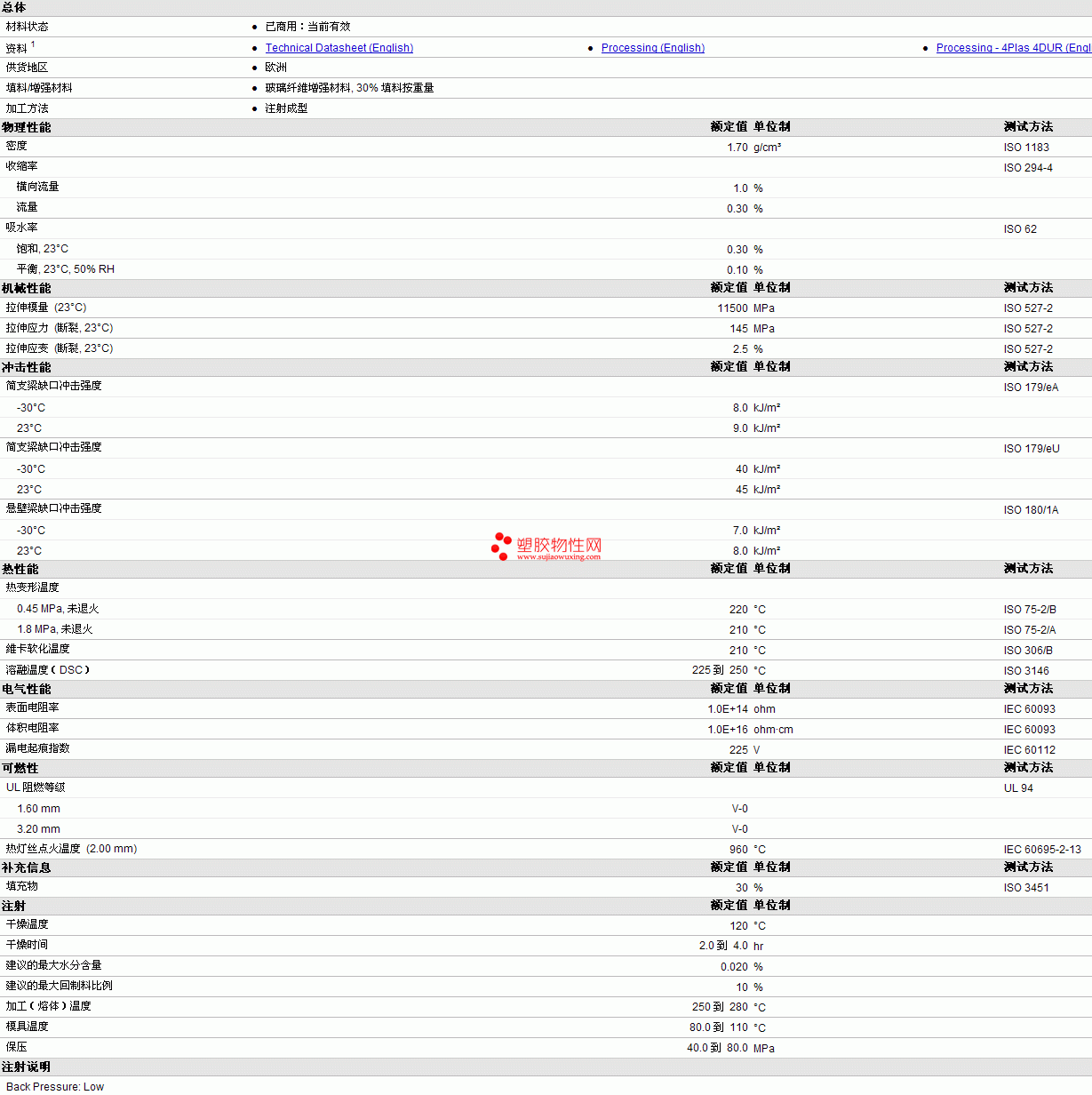 4DUR PBT 9KL22130 FR1物性详情见附件表
