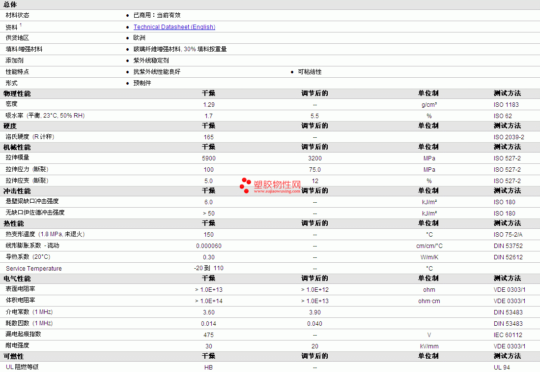GEHR Stock Shapes PA 6.6 30GF物性表详情见附件