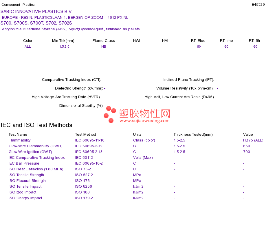 Acrylonitrile Butadiene Styrene (ABS) S700, S700S, S700T, S702, S702SUL黄卡资料请登陆会员后查看,如需电子档资料,请联系客服! 赵生:手机13424755533;QQ:27660005