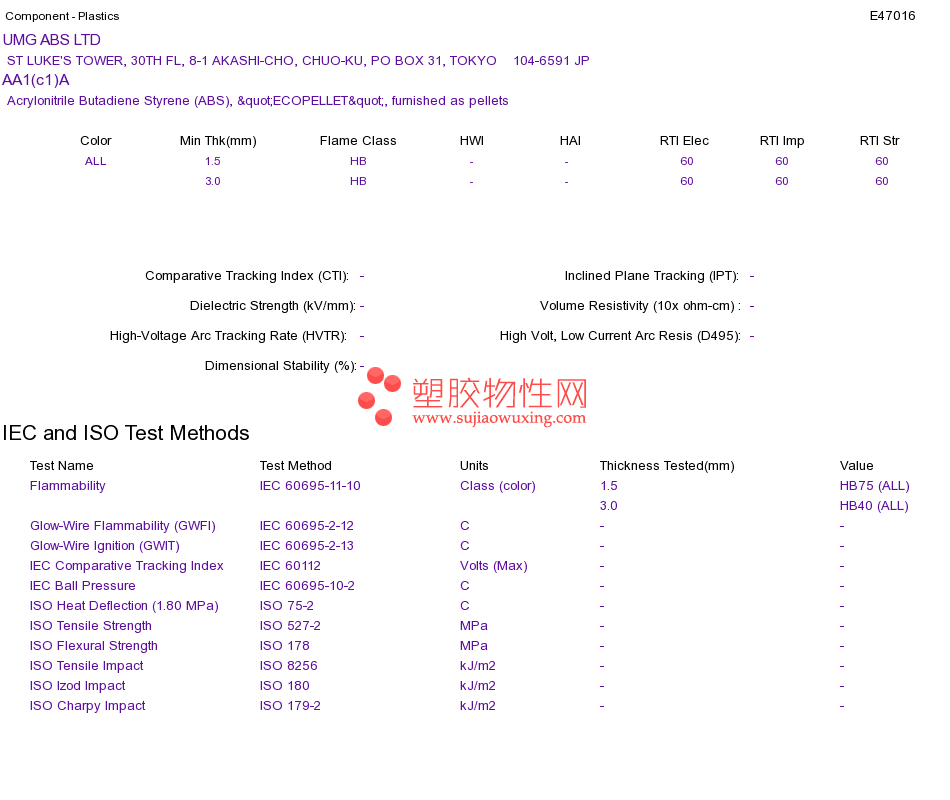 Acrylonitrile Butadiene Styrene (ABS) AA1(c1)AUL黄卡资料请登陆会员后查看,如需电子档资料,请联系客服! 赵生:手机13424755533;QQ:27660005