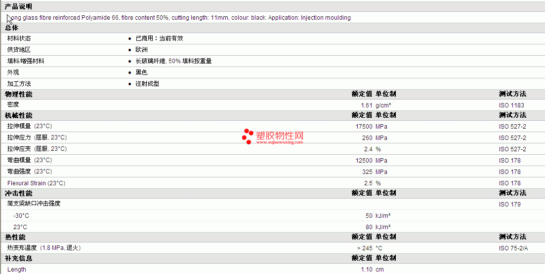 FACTOR PA66 LGF50 S11物性表详情见附件