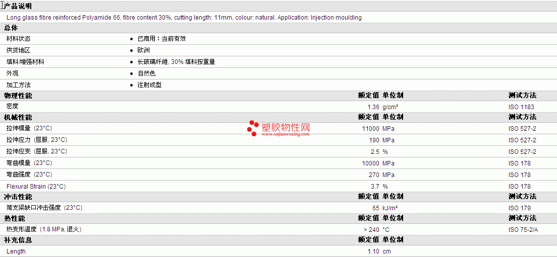 FACTOR PA66 LGF30 N11物性表详细内容如图