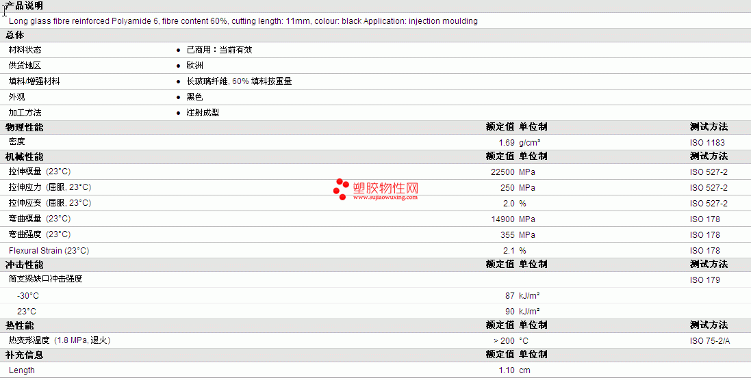 FACTOR PA6 LGF60 S11物性表详细内容如图