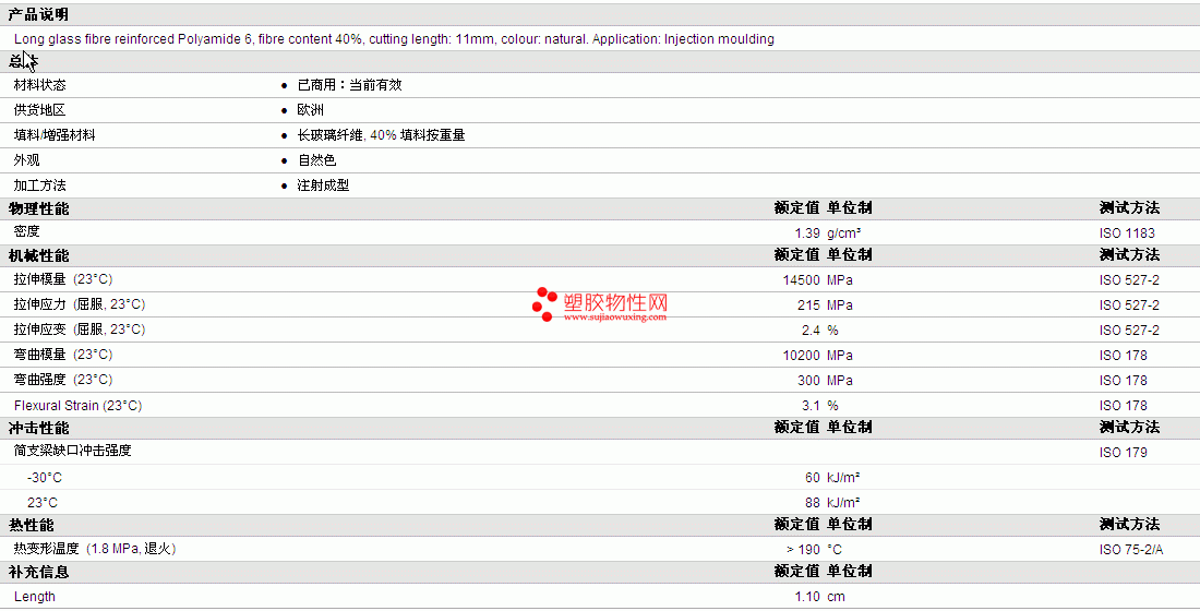 FACTOR PA6 LGF40 N11物性表详细内容如图