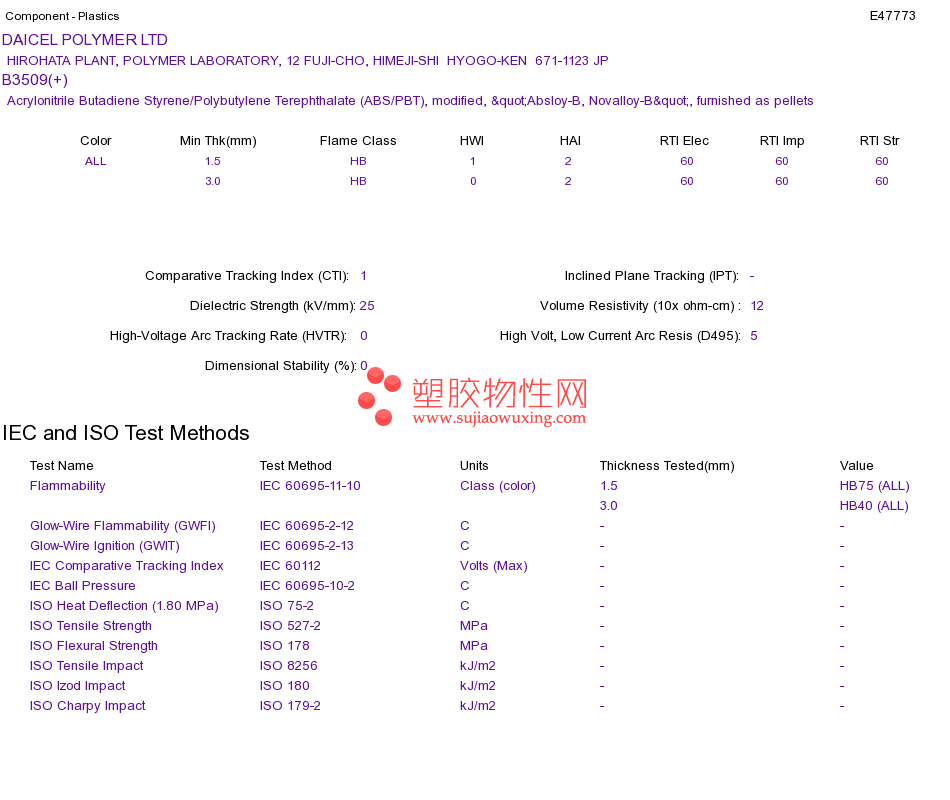 Acrylonitrile Butadiene Styrene/Polybutylene Terephthalate (ABS/PBT) B3509(+)UL黄卡资料请登陆会员后查看,如需电子档资料,请联系客服! 赵生:手机13424755533;QQ:27660005