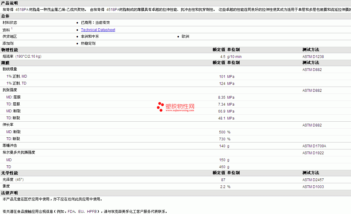 需了解Exceed 4518PA物性表更多详情,材质证明、ROHS(SGS)报告、物质安全资料表(MSDS)、UL黄卡等,最新行情报价等可来电咨询