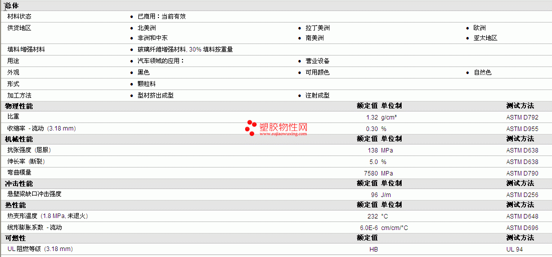 EnCom PA/PPE 2030GF BK43001物性表详细情况如图