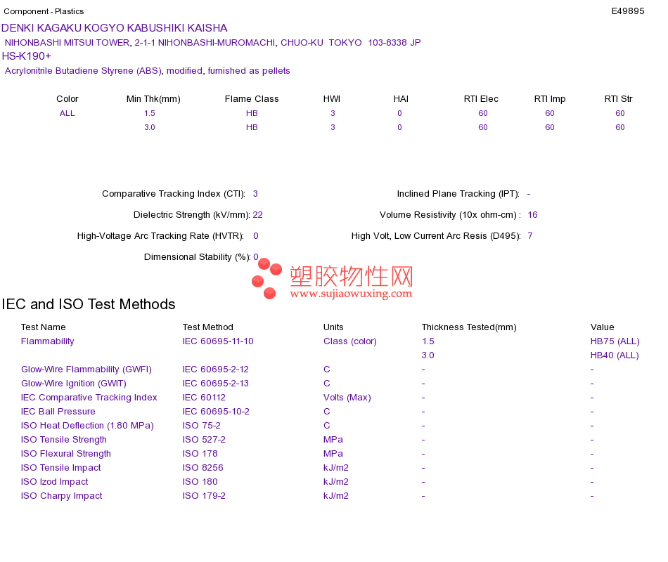 Acrylonitrile Butadiene Styrene (ABS) HS-K190+UL黄卡资料请登陆会员后查看,如需电子档资料,请联系客服! 赵生:手机13424755533;QQ:27660005