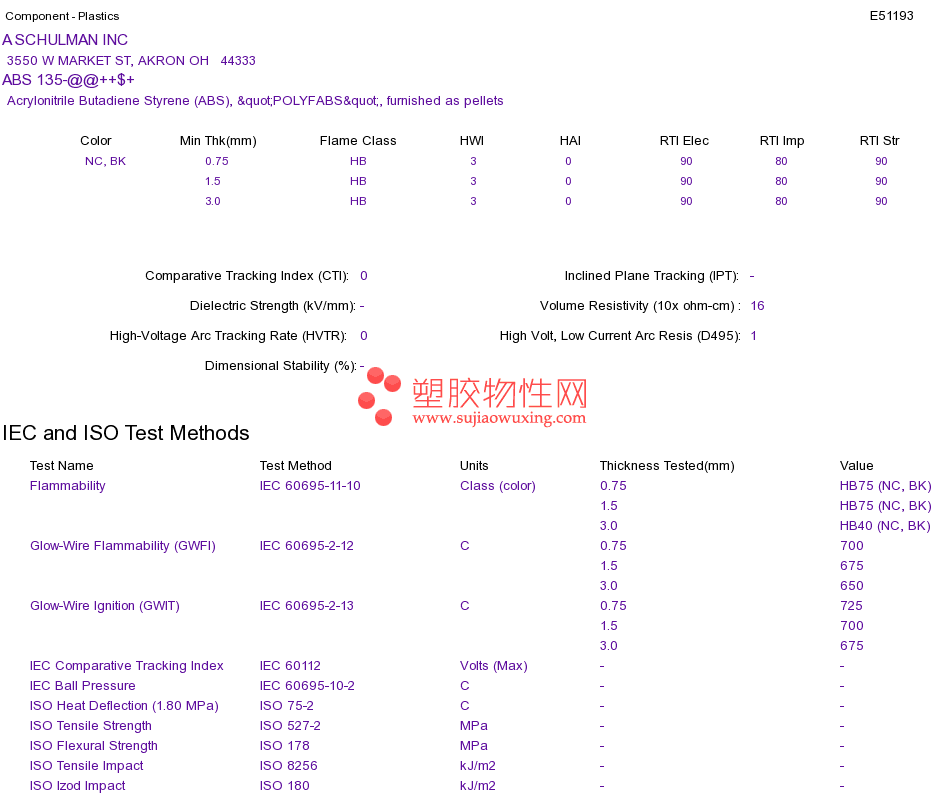 Acrylonitrile Butadiene Styrene (ABS) ABS 135-@@++$+UL黄卡资料请登陆会员后查看,如需电子档资料,请联系客服! 赵生:手机13424755533;QQ:27660005