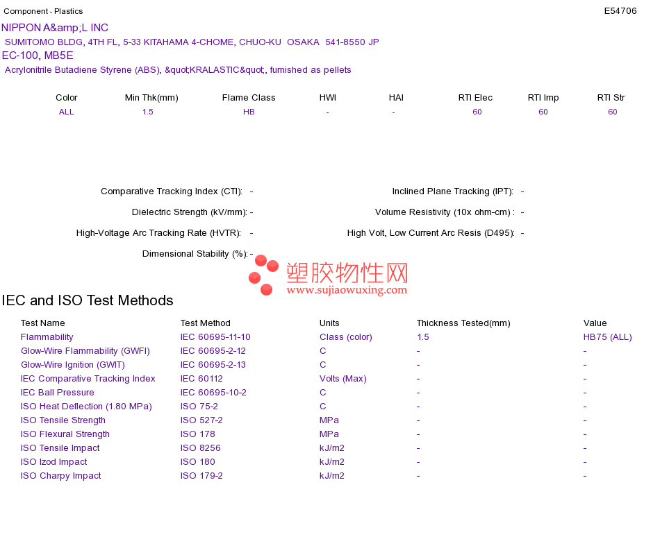 Acrylonitrile Butadiene Styrene (ABS) EC-100, MB5EUL黄卡资料请登陆会员后查看,如需电子档资料,请联系客服! 赵生:手机13424755533;QQ:27660005