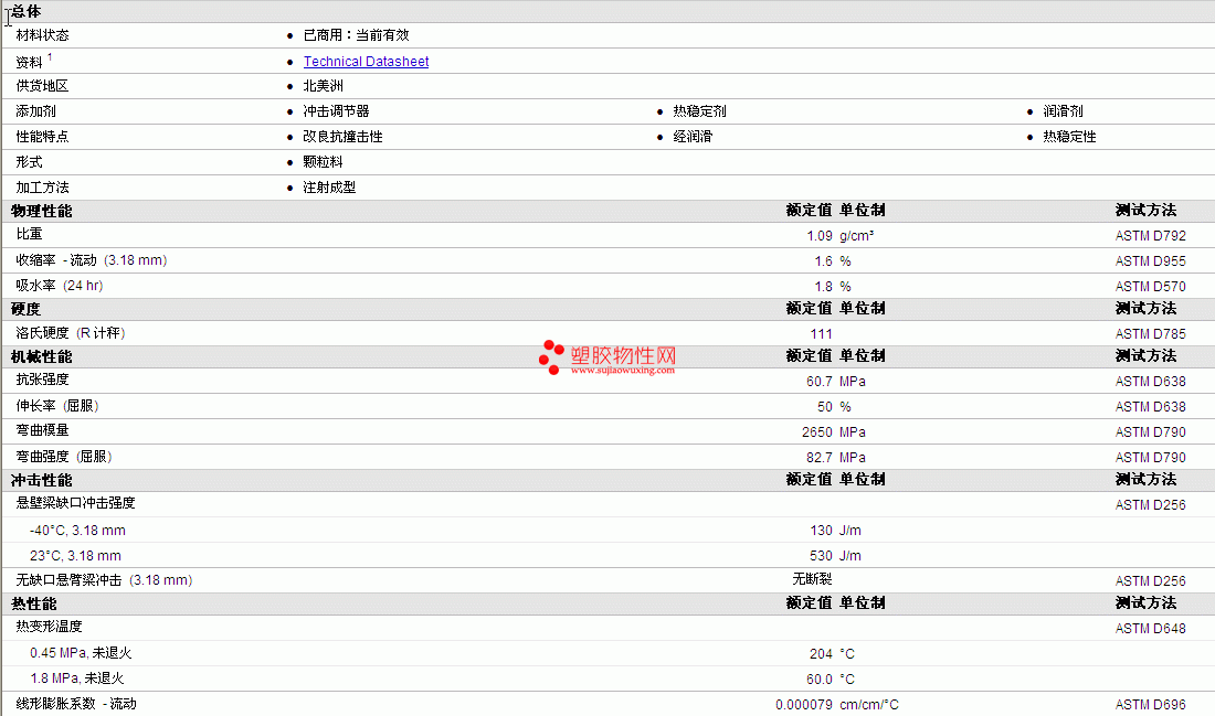 Elastoblend PA6/6 IM5 BK物性表详细情况如图