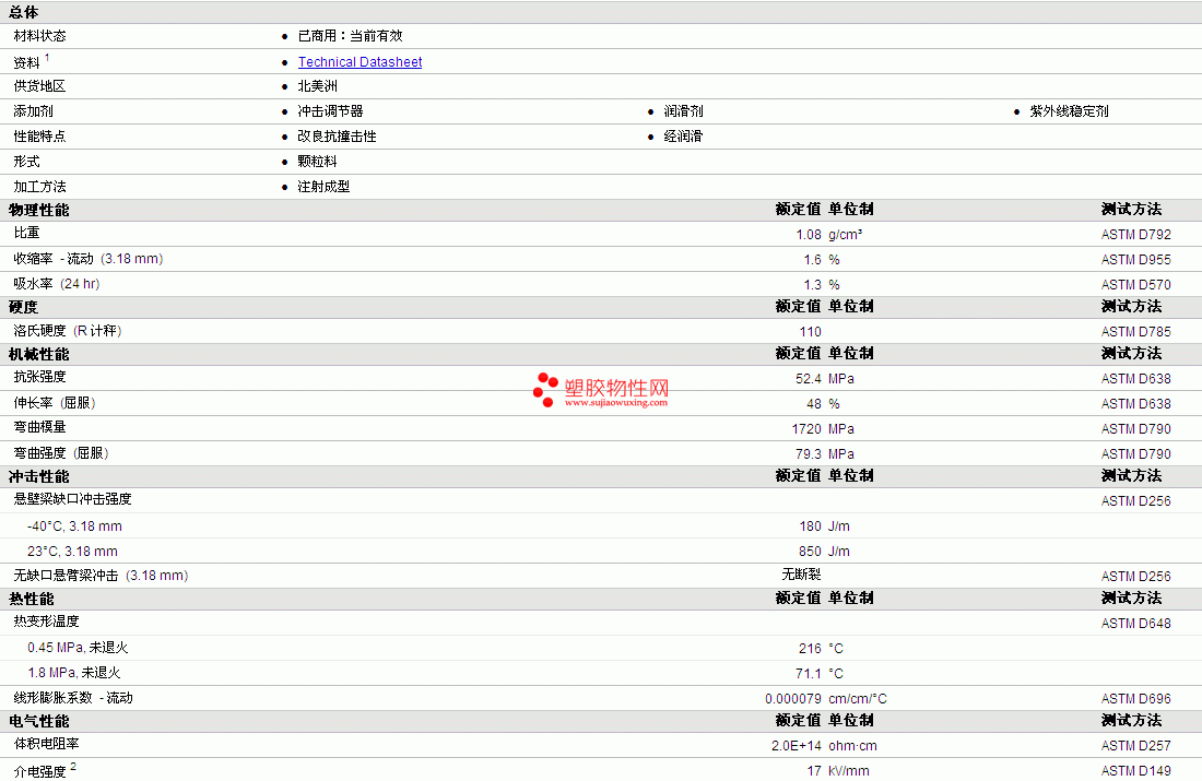 Elastoblend PA6/6 IM L UV物性表详情如图所示