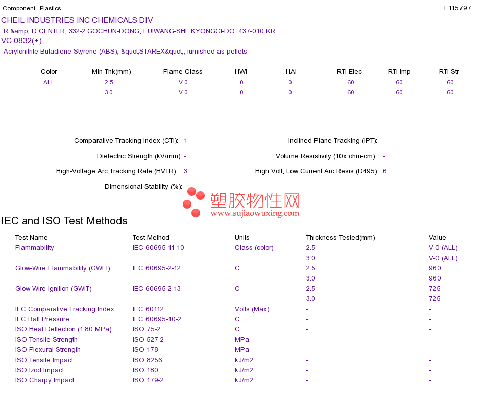 Acrylonitrile Butadiene Styrene (ABS) VC-0832(+)UL黄卡资料请登陆会员后查看,如需电子档资料,请联系客服! 赵生:手机13424755533;QQ:27660005