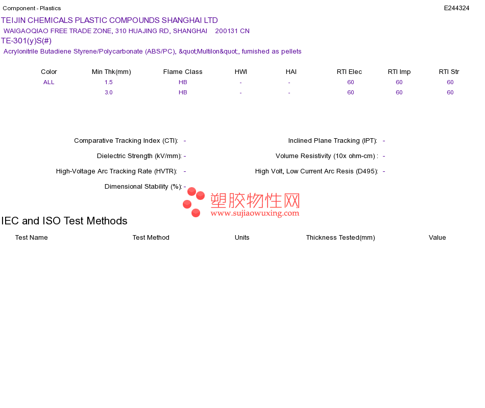Acrylonitrile Butadiene Styrene/Polycarbonate (ABS/PC) TE-301(y)S(#)UL黄卡资料请登陆会员后查看,如需电子档资料,请联系客服! 赵生:手机13424755533;QQ:27660005
